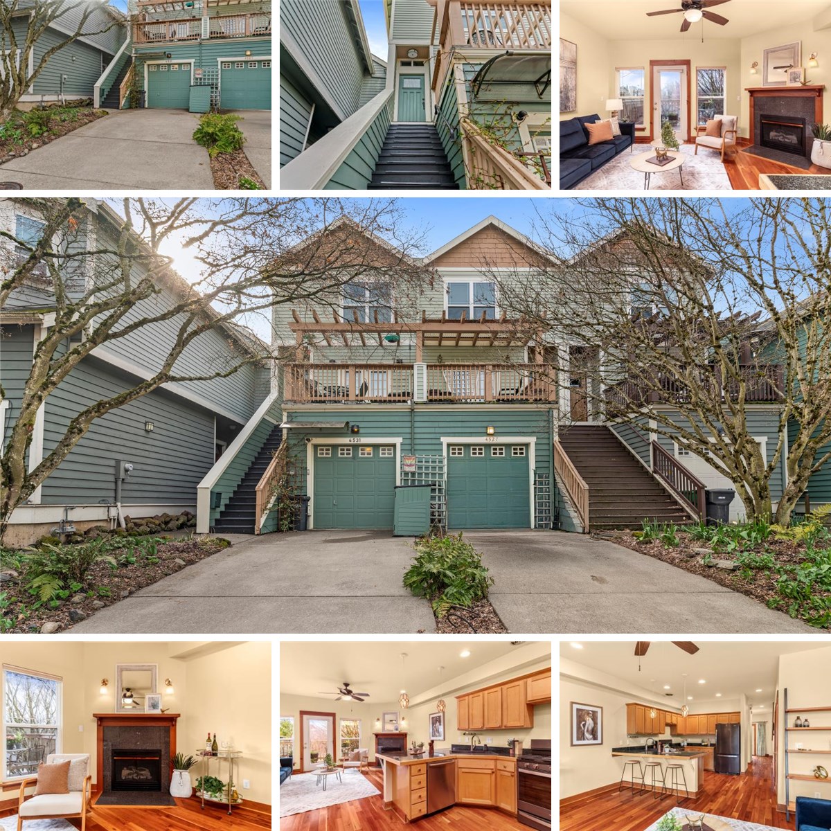 Quiet and private urban townhome offers spacious, pleasant views and convenience to prime cafes and shops. Two treehouse-like decks expand living space with east/west views. Two en-suite bedrooms with walk-in closets on the upper floor, plus a separate ground-floor two-room suite, support multigenerational living. The ground floor unit, currently a popular, licensed, short-term rental, which netted $24,800 in 2024, is being sold turnkey and fully furnished. Upgrades include hardwood floors throughout the two upper floors, custom built-in bookcases, and unpainted cedar trim. With a single car garage, off-street parking, and fenced-in backyard, this versatile townhome is an ideal, low maintenance, single family home alternative. Recent updates include a new furnace (2024), fresh paint inside and out (2021), new refrigerator, range, kitchen sink, washroom sink, washer/dryer and updated light fixtures (2020). Neighborhood favorites include Trader Joes, Keeper Coffee, Cafe Rowan. Convenient to Reed College, Woodstock, and Creston Pool. No HOA or dues!